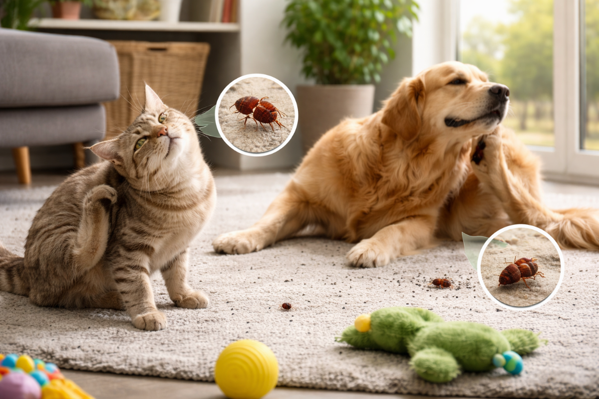 - Démangeaisons persistantes chez vos animaux, parfois accompagnées de pertes de poils.